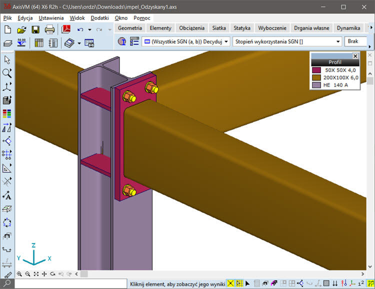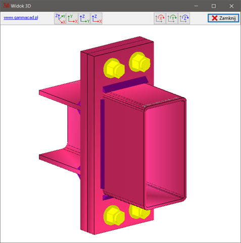Podgląd połączenia belka-słup na modelu globalnym w AxisVM